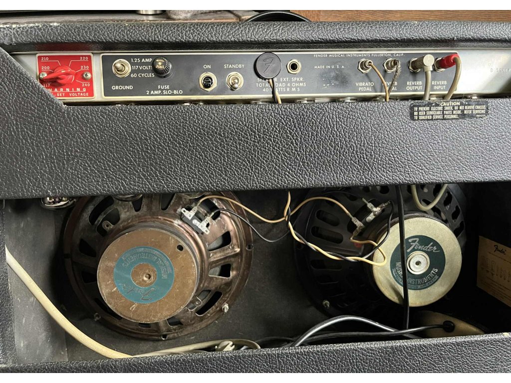 Celolampové Silverface kombo Fender Vibrolux Reverb z roku 1976 ve skvělém, patinovém stavu. Je to exportní verze na 230V. Má dva 10" reproduktory, nádherný, typický křišťálový zvuk 70. let. Vibráto i pružinový reverb se ovládají pomocí pedálu a fungují perfektně. S tímhle kombem uhrajete jak malé kluby tak i velká pódia.