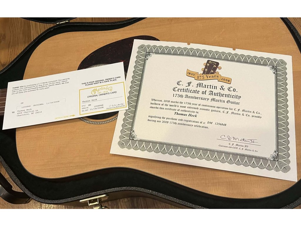 Nádherný originál USA Martin z roku 2008, model DM, vrchní deska smrk, luby a zadek mahagon. Kytara je ve skvělé kondici, velmi opečovávaná, s certifikátem od původního majitele, v ceně je originál Martin kufr.